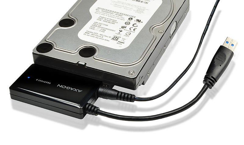 Univerzálný all-in-one adaptér AXAGON ADSA-FP3 FASTport3 s USB 3.0 a SATA 6G rozhraním určený pre jednoduché pripojenie ľubovoľného SATA disku alebo mechaniky.