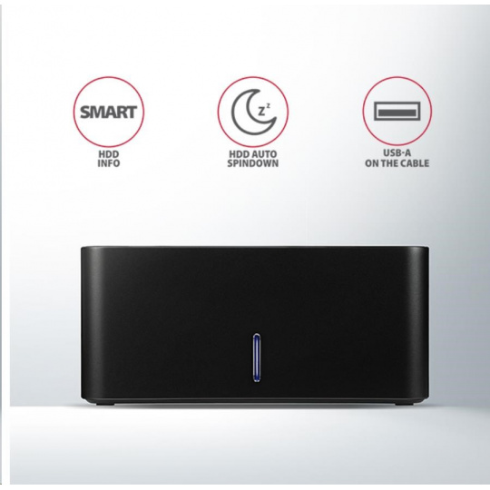 Dokovacia stanica AXAGON ADSA-SN COMPACT HDD/SSD DOCKSuperSpeed USB rýchlo a jednoducho pripojí akýkoľvek disk SATA k počítaču.