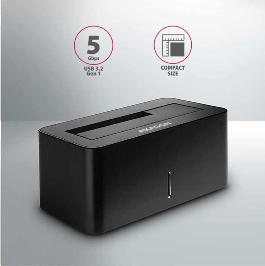 Dokovacia stanica AXAGON ADSA-SN COMPACT HDD/SSD DOCKSuperSpeed USB rýchlo a jednoducho pripojí akýkoľvek disk SATA k počítaču.