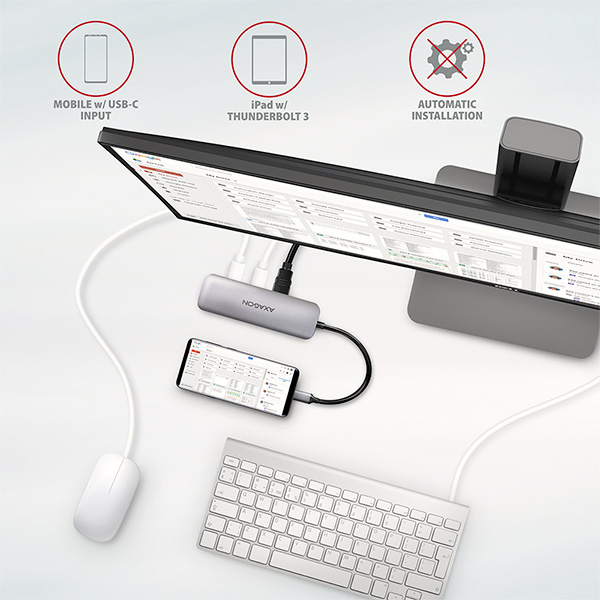 Replikátor portov je ideálnym príslušenstvom pre notebooky bez konektorov USB-A, čítačky kariet a video výstupu. Vaše existujúce periférne zariadenia USB môžete v rozbočovači používať bez nutnosti kupovať nové. Vďaka funkciám Plug and Play a Hot Plug je pripojenie samotného rozbočovača veľmi jednoduché bez zložitej inštalácie a periférne zariadenia môžete ľahko pripájať a odpájať aj počas chodu počítača. Rozbočovač sa nevyhýba ani pripojeniu k telefónom s konektorom USB-C. K telefónu môžete pripojiť napríklad flash disk, klávesnicu, myš, monitor, televízor alebo projektor.