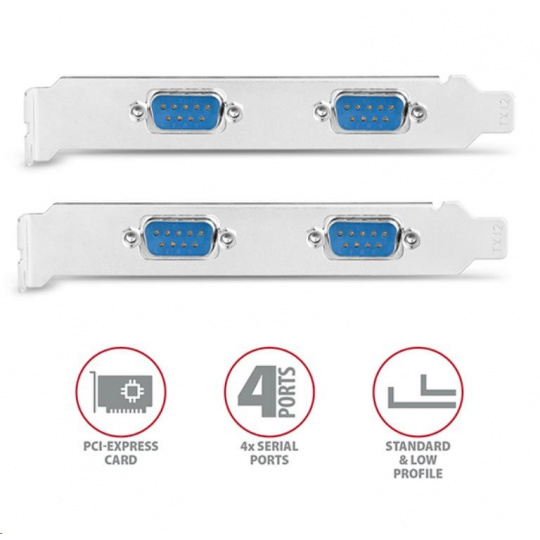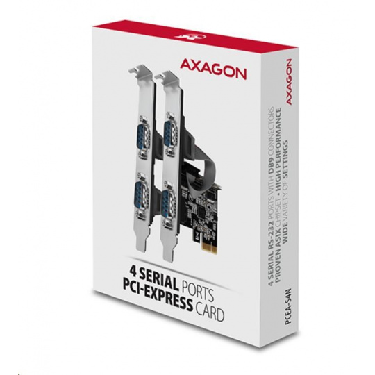 AXAGON PCEA-S4N, PCIe radič - 4x sériový port (RS232) 250 kbps, vrátane. LP
