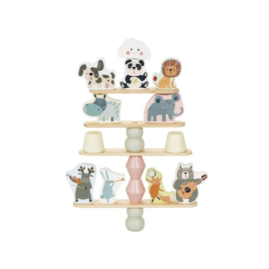 Drevená balančná hra s veselé zvieratká, doskami, kockami a s dúhou, je multifunkčná hračka, s ktorou si užijú veľa zábavy deti aj celá rodina. Pri tejto balančnej hre môže balansovať všetko, čo nájdete v balení. Akú vysokú pyramídu a čo všetko na jej výstavbu deti použijú, je čisto na ich fantáziu. Pri balančnej hre deti zdokonaľujú jemnú motoriku, koordináciu, logické myslenie, priestorovú predstavivosť, učia sa sústrediť sa a trpezlivosti.