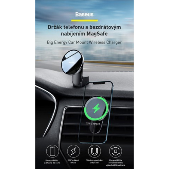 Držiak Baseus Big Energy s bezdrôtovým nabíjaním 15 W čierny (kompatibilný s Apple iPhone 12 Series)