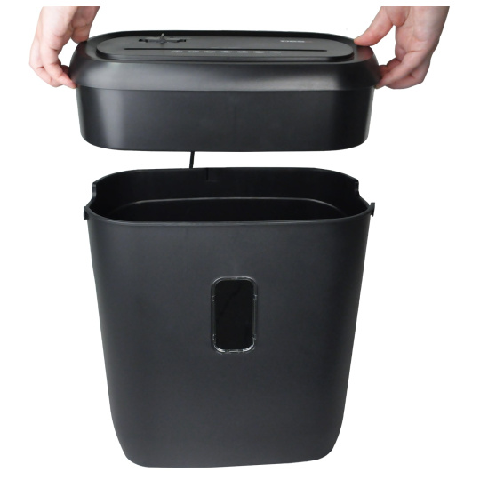Výkonný krížový skartovač papiera s priestranným nádobou, ideálny pre domáce kancelárie a malé kancelárie. ? Skartuje papier (vrátane sponiek) a platobné karty ? Kapacita až 11 listov (A4, 70 g/m2) na jeden priechod ? Priestranná 21 litrová nádoba – pojme až 200 listov skartovaného A4 papiera ? Bezpečnostná úroveň P-4 – rozreže jeden list A4 na 440 častíc ? LED indikátor prehriatia – ochrana proti preťaženiu ? Sledovacie okienko nádoby – jednoduchá kontrola zaplnenia odpadu ? Možnosť použitia bez odpadkového vrecka Pokročilé funkcie: ?? Automatický štart-stop a manuálne spätné chodenie – jednoduché odstránenie zaseknutého papiera ?? Zariadenie funguje iba vtedy, ak je nádoba správne umiestnená – zvýšená bezpečnosť ?? Tepelná ochrana – zabraňuje prehriatiu skartovače Používajte skartovač doma aj v kancelárii, aby sa dôverné dokumenty nedostali do bežného odpadu.
