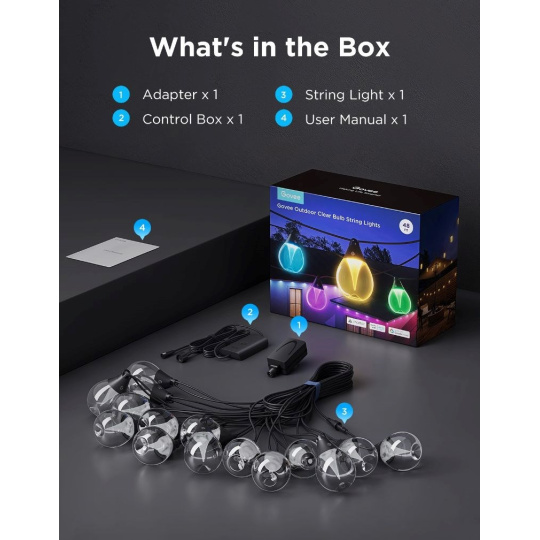 Vonkajšia žiarovková reťaz Govee s 15 žiarovkami prinesie do každého vonkajšieho priestoru čarovnú atmosféru vďaka elegantnému dizajnu priehľadných žiaroviek s teplým, príjemným svetlom. Tieto svetelné reťaze odolné voči poveternostným vplyvom sú navrhnuté na vonkajšie použitie a majú stupeň krytia IP67, takže bezpečne odolávajú dažďu, vetru a prachu a skvele fungujú pri teplotách od -20 do 40 °C.