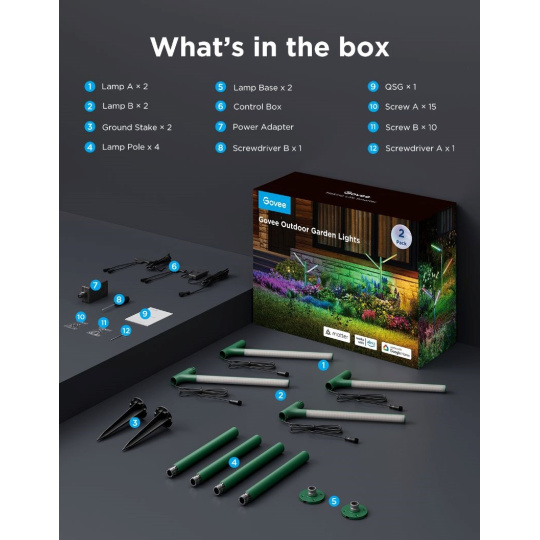 BAZAR - Govee RGBWW zahradní světlo 2ks Matter - Poškozený obal (Komplet)