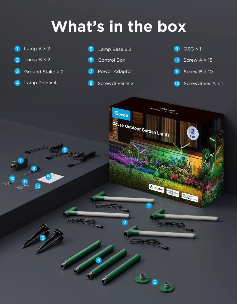 BAZAR - Govee RGBWW zahradní světlo 2ks Matter - Poškozený obal (Komplet)