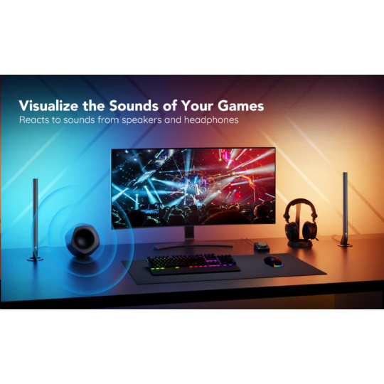 Vylepšete své herní, filmové a hudební zážitky s chytrými světelnými panely Govee Smart Gaming. 16 milionů barev s 62 režimy a 8 režimů pro synchronizaci s hudbou povznesou zážitek ze sledování televize nebo hraní her na novou úroveň. Ovládají se hlasem přes Siri, Amazon Alexa nebo Google Assistant, přes aplikaci nebo přes Smart Dual ovladač. Nebudete proto ani muset vstávat z gauče. Barevné podsvícení opticky zvětšuje obraz, šetří oči a má živostnost až 50.000 hodin.