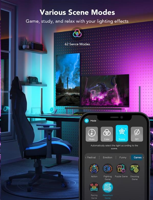 16 milionů barev a 62 scénických režimů pro ideální osvětlení a navození atmosféry