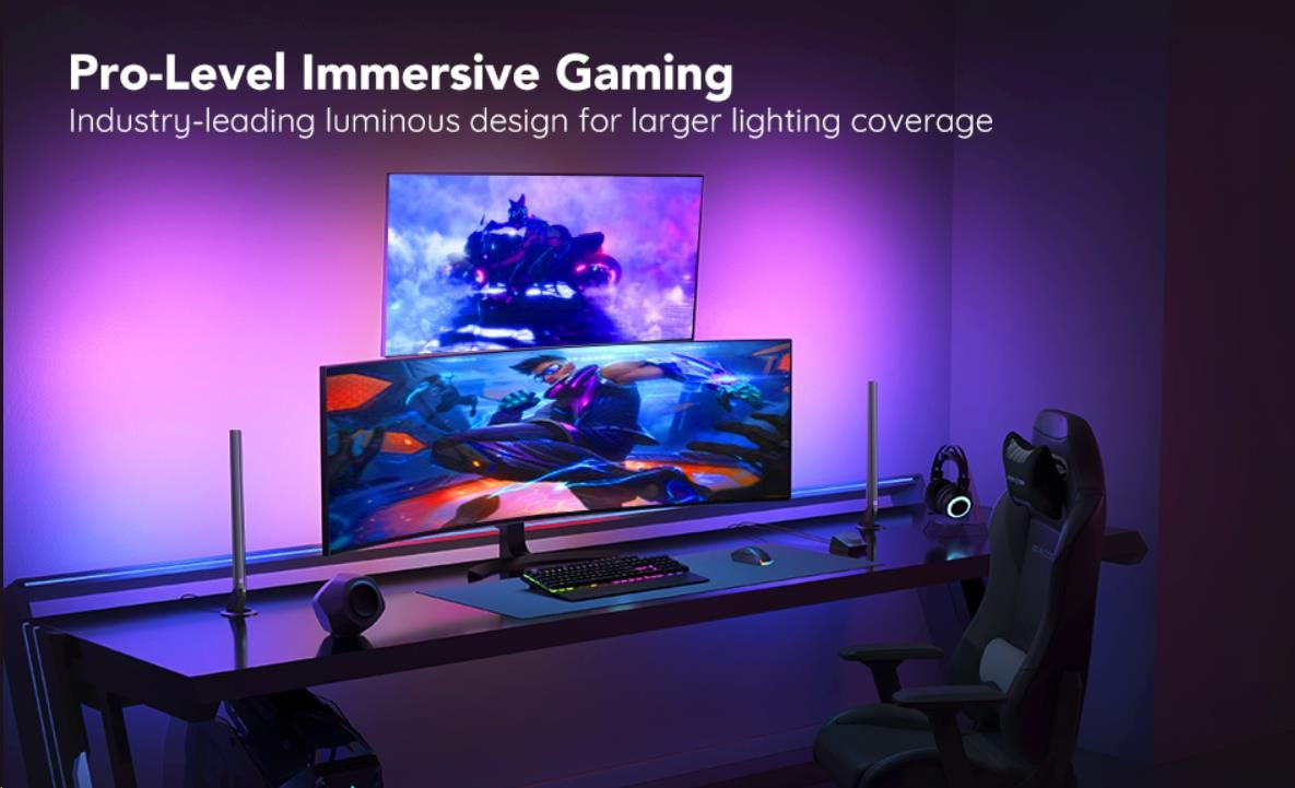 Vylepšete své herní, filmové a hudební zážitky s chytrými světelnými panely Govee Smart Gaming. 16 milionů barev s 62 režimy a 8 režimů pro synchronizaci s hudbou povznesou zážitek ze sledování televize nebo hraní her na novou úroveň. Ovládají se hlasem přes Siri, Amazon Alexa nebo Google Assistant, přes aplikaci nebo přes Smart Dual ovladač. Nebudete proto ani muset vstávat z gauče. Barevné podsvícení opticky zvětšuje obraz, šetří oči a má živostnost až 50.000 hodin.
