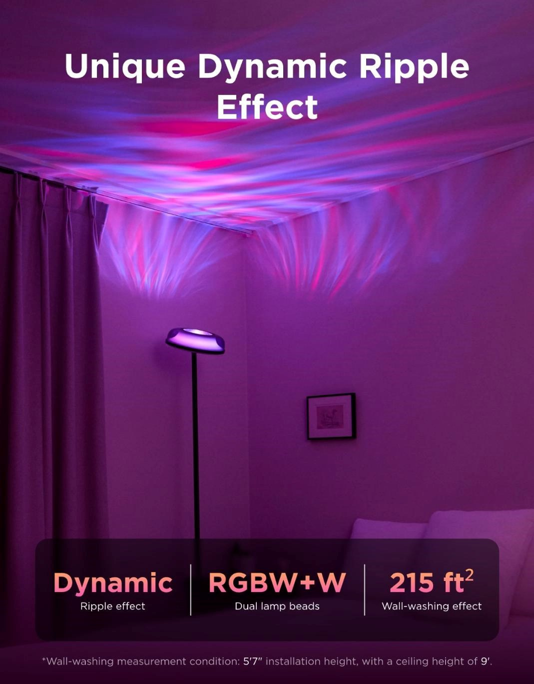 Horná časť lampy je vybavená vlnkovým projekčným efektom, ktorý premieňa steny a stropy na pohyblivé svetelné vzory. Efekt je dynamický a plynulý, takže každý večer pôsobí ako mini svetelná show. Ideálny na relax, večierky alebo jednoducho na wow efekt v každom izbe.