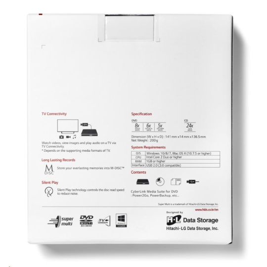BAZAR - HITACHI LG - externí mechanika DVD-W/CD-RW/DVD±R/±RW/RAM GP57EB40, Slim, Black, box+SW - Poškozený obal (Komplet