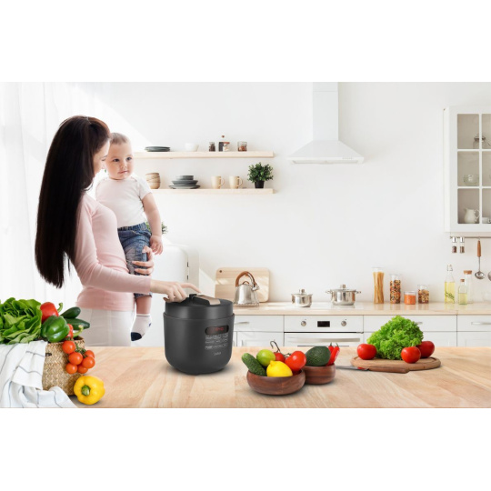 Prístroj disponuje 9 prednastavenými programami - ryža, hrubé obilniny, porridge , bravčové, kurča, strukoviny/šľachovité mäso, rýchla omáčka, polievka, ohrev. Všetky suroviny iba vložíte do tlakového hrnca, uzavriete a navolíte príslušný program. Podobne máte možnosť vybrať si z 3 úrovní štruktúry mäsa, tuhá až mäkká. Čas varenia je možné upraviť aj manuálne. Vďaka funkcii Keep Warm udržíte jedlo teplé aj pre oneskorencov. Funkcia odloženého štartu zase pomôže, aby ste po príchode domov mali jedlo už hotové.