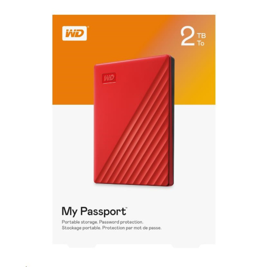 BAZAR - WD My Passport Portable 2TB, Externí HDD, USB 3.0, červená (Bez příšlušenství)