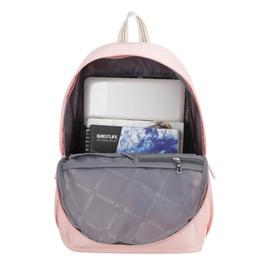 Batohy na notebooky - Batoh BESTLIFE, určený pre vysoké školy. Vrecko na notebook pojme až 14,1" notebook a je vybavený vnútorným držiakom na pero a kapsami s organizérom. V prednej časti je veľké a malé vrecko na zips a na boku kapsa na fľašu s vodou. Vedľa nej je priestor pre notebook a ďalšie príslušenstvo.