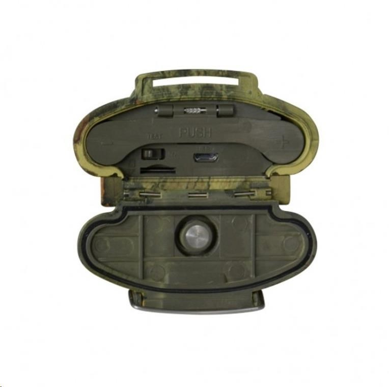 Digitálna sledovacia fotopast s detekciou pohybu alebo nastavením TimeLapse, záznam 1-9 fotiek JPEG 16 MP alebo FullHD video AVI 1080p vrátane zvuku, 90°/1,8 objektív, PIR senzor s uhlom 120° / 20m dosahom / 0,5s oneskorením, 48 Black IR LED 940nm až do 25m. 5Mpx čip pre farebné denné zábery a čiernobiele v noci. Outdoor zariadenie s vonkajším 2" LCD pod krytom a diaľkovým ovládaním, vodotesné podľa IP54, záznam dátumu/ času/ fázy mesiaca, maskované prevedenie na zavesenie v prírode - veľmi tenký moderný dizajn, farba camouflage. Časosberný režim 30-240min, slot pre karty SDHC do 32 GB, 6x AA batérie alebo 9V DC externý zdroj, laserové svetlo pre nastavenie smeru snímania v noci (TEST režim), rozmery: 172 x 80 x 43,5 mm. V balení inštalačné CD, kábel USB, diaľkové ovládanie a dva remene na uchytenie. BlackVision LED 940nm majú nižší dosah ako bežné IR LED, ale sú vhodné na stráženie proti zlodejom - nie sú viditeľné ani pri priamom pohľade na fotopast pri expozícii.