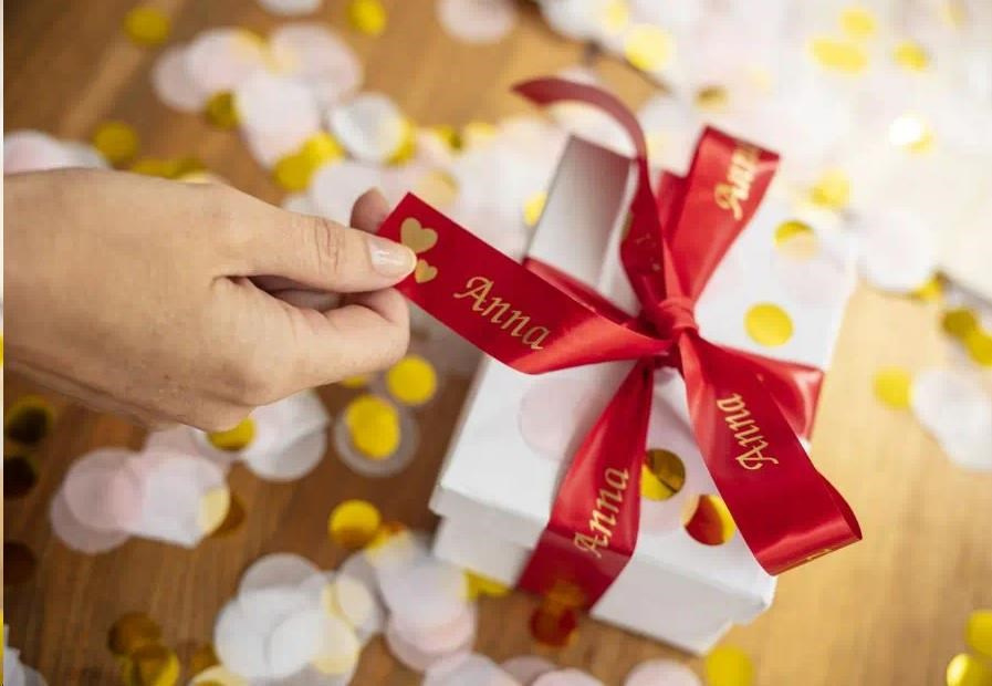 BROTHER TZE-RW54 - 24 mm široká kazeta s TZ páskou, 4 m TEXTILNÁ páska - na výrobu darčekov - NEŠTÍRIVÁ - ČERVENÁ PÁSKA, ZLATÝ POTISK