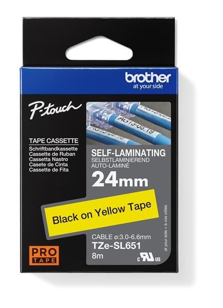 BROTHER TZESL651 - kazeta TZ šířky 24mm, lamino TZE-SL651, žlutá/černé písmo