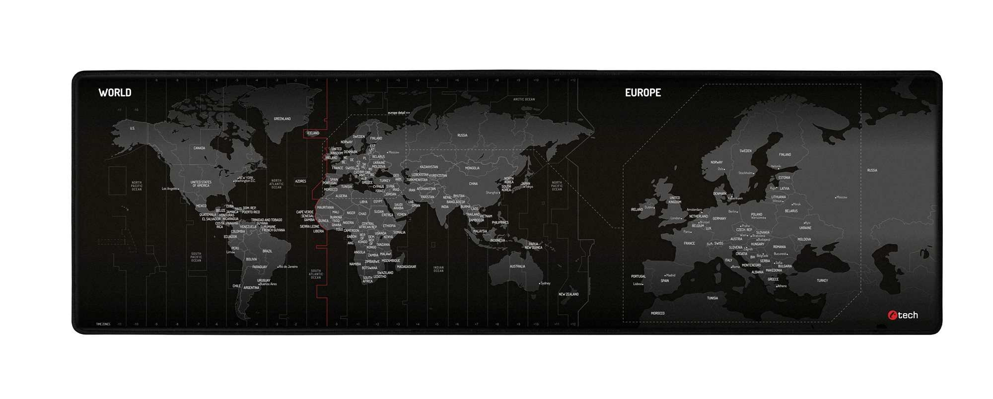 Herná podložka pod myš C-TECH MP-01W (World), 900x270x4mm, obšité okraje