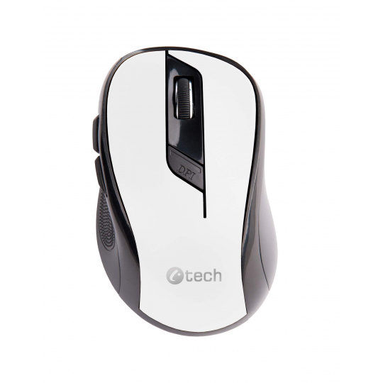 Myš C-TECH WLM-02, čiernobiela, bezdrôtová, 1600DPI, 6 tlačidiel, USB nano prijímač