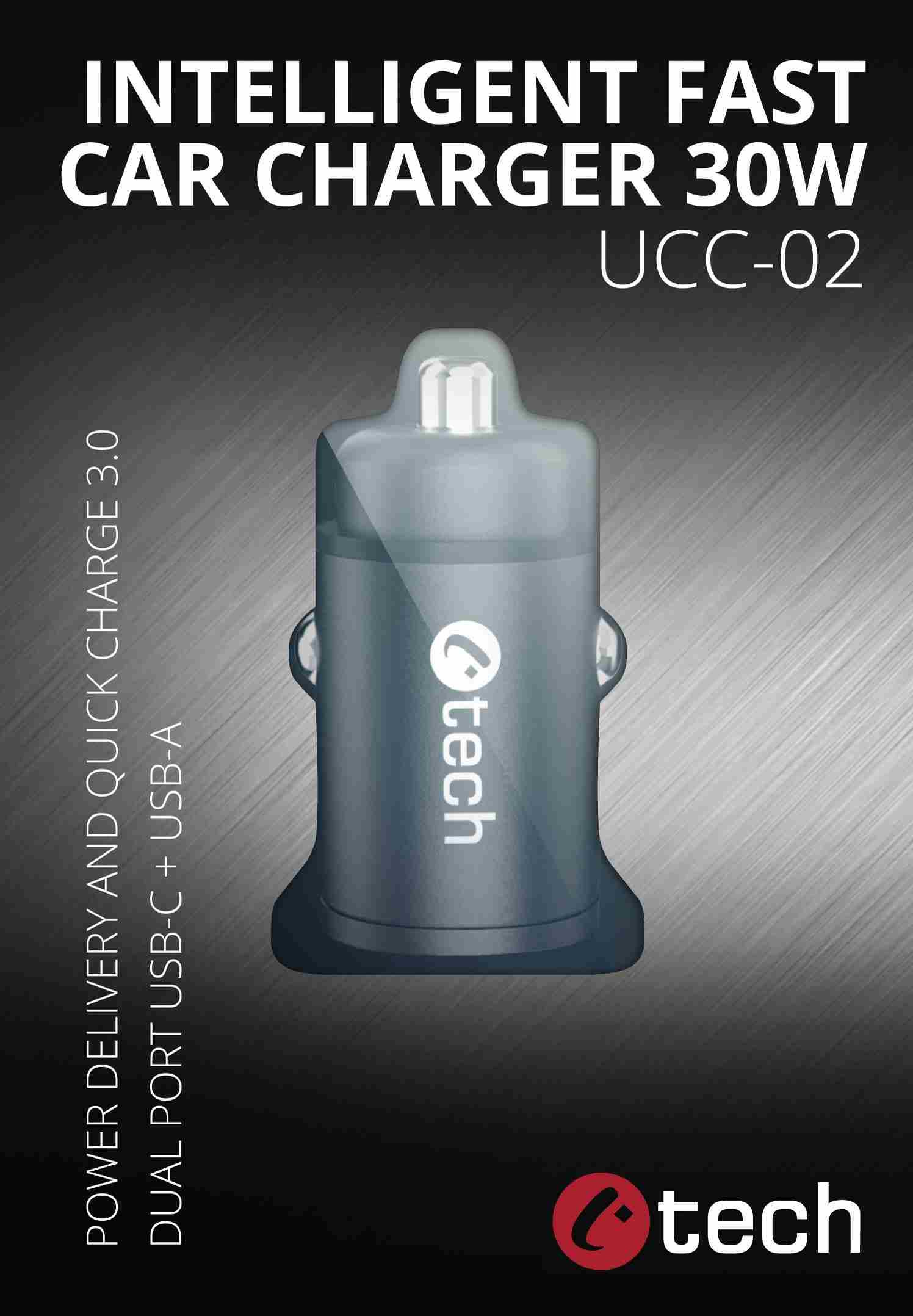Miniatúrna nabíjačka do auta C-tech UCC-02 s podporou mnohých technológií rýchleho nabíjania sa postará o rýchle nabitie tabletu alebo telefónu. Ponúka vám celkom 2 výstupy typu USB-A a USB-C s celkovým výkonom 30W. Táto malá nabíjačka podporuje moderné technológie rýchleho nabíjania Power Delivery 3.0, Quick Charge (QC 3.0 + QC 2.0) a rad ďalších štandardov rýchleho nabíjania. Nabíjačku je možné použiť v osobných a dodávkových vozidlách s napätím 12 V, ale aj v veľkých nákladných automobiloch s 24V zásuvkou. Inteligentný čip dokáže rozpoznať nabíjané zariadenie a prispôsobiť tak potrebné napätie, čím šetrí energiu a zároveň chráni batériu. Nabíjačka C-tech UCC-02 je vybavená 5-násobnou ochranou, čím ochráni vaše digitálne zariadenia pred prepätím, podpätím, preťažením siete, skratmi aj vysokými teplotami. Telo nabíjačky je vyrobené z hliníku a je opatrené štýlovým čiernym povrchom - dokonale tak splynie s väčšinou interiérov. Minatúrne rozmery 73mm x 33mm a nízka hmotnosť robia z nabíjačky ľahko prenosný doplnok, môžete ju mať stále pri sebe a využívať jej kvality prakticky v každom automobile. Skladaný úchyt na vrchnej strane nabíjačky uľahčuje jej vytiahnutie zo zásuvky.