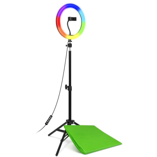 Ak chcete povýšiť svoje videá a fotky na vyššiu úroveň, využite priložený green screen, vďaka ktorému vaša tvorba zaujme unikátnym pozadím a získa originálnu atmosféru. Absolútna sloboda v nastavení požadovaného uhla je garantovaná uchytením svetla pomocou guľovej hlavy. Farebná teplota svetla je možné nastaviť od studenej po teplú v troch úrovniach. Držiak mobilného telefónu umiestnený na flexibilnom husom krku umožňuje pohodlné nastavenie do ľubovoľného uhla snímania fotografií a videí. Vo výbave nechýba diaľkové ovládanie na vypnutie/zapnutie svetla, nastavenie jeho intenzity alebo farebnej teploty.