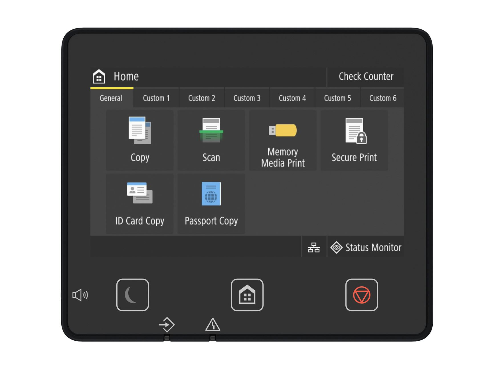 | Doba tlače prvej kópie | ADF (A4): Farebne približne 8,8 sekundy alebo menej Čiernobielo približne 7,6 sekundy alebo menej Sklo skenera (A4): Farebne približne 9,4 sekundy alebo menej Čiernobielo približne 8,3 sekundy alebo menej |