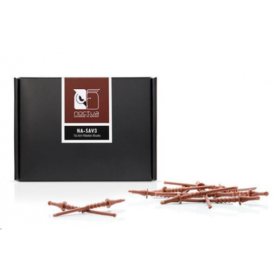 Tieto skrutky nahradzujú štandardné skrutky na upevnenie ventilátorov a majú anti-vibračný efekt. Špecifický dizajn umožňuje pohodlnejšiu inštaláciu v priestore obmedzenom prostredí počítača a vďaka použitiu vysoko kvalitnej gumy sú tieto úchyty mimoriadne jemné a zároveň odolné voči vytrhnutiu. Výmenou štandardných skrutiek za NA-SAV3 úchyty môžete výrazne znížiť hluk spôsobený vibráciami.