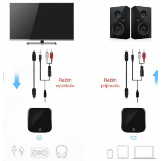 - Adaptér ako prijímač aj vysielač Bluetooth 4.1