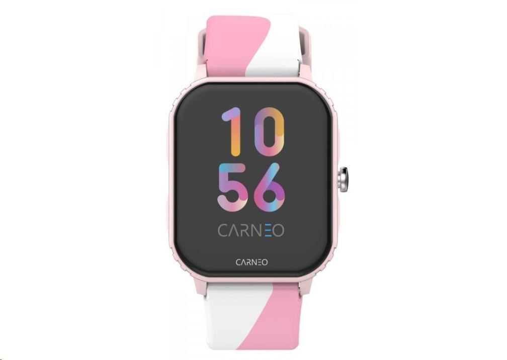 Moderné detské hodinky Carneo TIK&TOK HR+ druhej generácie v elegantnom bledoružovom prevedení disponujú IPS farebným displejom, ktorý je možné aktivovať simple otočením ruky. Umožňuje meranie srdcového tepu, prejdenej vzdialenosti, monitorovanie spálených kalórií či kvality spánku. Súčasťou je batéria s výdržou cca 7 dní. Podľa certifikácie IP68 sú odolné voči vode a prachu. Hodinky s podporou technológie Bluetooth sú kompatibilné s operačnými systémami iOS a Android. Silikónový remienok s kovovou sponou je príjemný na dotyk a zaručuje komfort počas celého dňa. Súčasťou balenia je aj náhradný, ružový remienok.