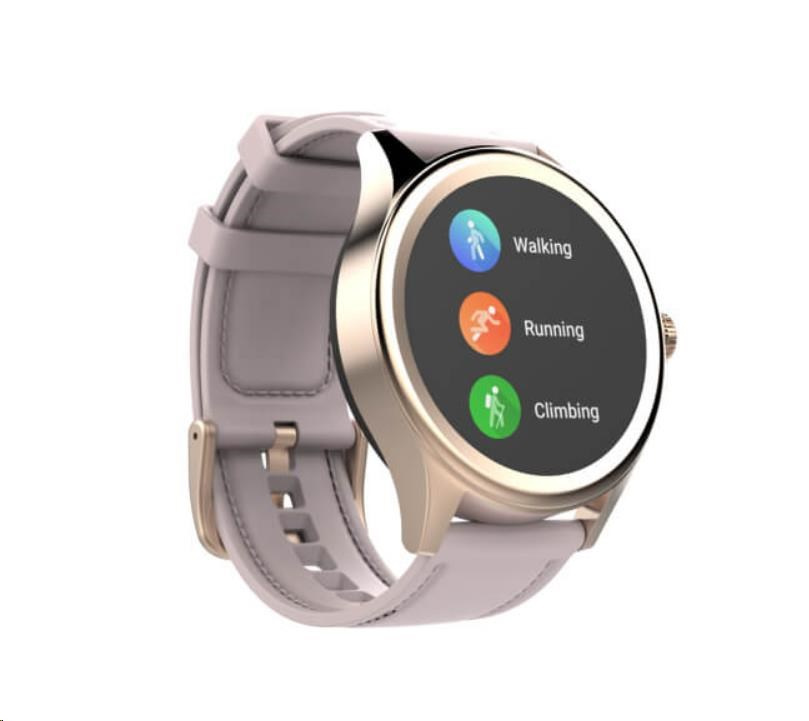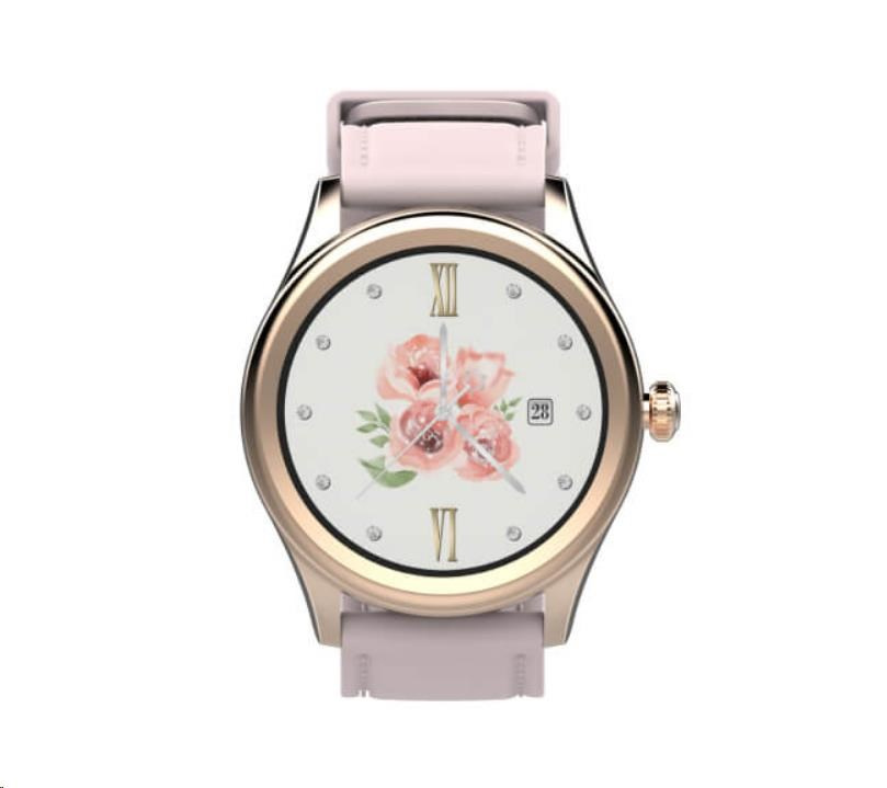 Smart hodinky Carneo Prime GTR v elegantnom zlatom prevedení, farebným dotykovým displejom je možné aktivovať jednoduchým otočením ruky. Okrem bežných "smart" funkcií disponujú aj fitness športovými funkciami a to všetko v elegantnom business look prevedení. Rosegold silikónový remienok v dizajne koženého páska s prešívaním umocňuje ich eleganciu.