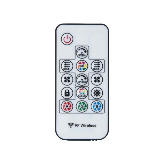 Nová sada ventilátorov CF-3012-RGB 3-RGB (Tornado) s multifunkčnou riadiacou doskou a RF diaľkovým ovládaním ľahko splní a prekoná všetky očakávania hráčov v oblasti osvetlenia. Vďaka priloženej multifunkčnej riadiacej doske možno osvetlenie RGB ovládať buď prostredníctvom +5V LED headeru základnej dosky, alebo úplne nezávisle, bez základnej dosky, prepínaním pomocou príslušných +5V LED headerov. Každý ventilátor je vybavený 16 adresovateľnými LED diódami a umožňuje takmer nekonečnú škálu RGB efektov, ktoré nie je možné realizovať jednoduchým a bežným +12 V RGB osvetlením. Okrem toho je každý ventilátor vybavený gumami tlmiacimi nárazy a antivibračnými gumami a má špeciálne tvarované lopatky, ktoré zaručujú tichú prevádzku. Biele lopatky ventilátora zabezpečujú rovnomerné osvetlenie. Všetky bežné technológie základných dosiek s adresovateľným RGB +5 V, ako napríklad ASUSTMaURA, ASRockTMsynchronizácia RGB, MSITMmystic Light Sync a GigabyteTMrGB FUSION sú podporované. Multifunkčný rozbočovač je možné pripojiť k adresovateľnému záhlaviu RGB +5 V. Ponúka 6x 6PIN konektory pre ventilátory a 2x 3PIN +5V RGB konektory pre ďalšie periférie, ako sú LED pásky a podobne. Farebné režimy a rýchlosť ventilátora možno ovládať aj priamo pomocou funkčných tlačidiel na doske ovládača, ktorá je samozrejme kompatibilná so všetkými ventilátormi CHIEFTEC RGB.