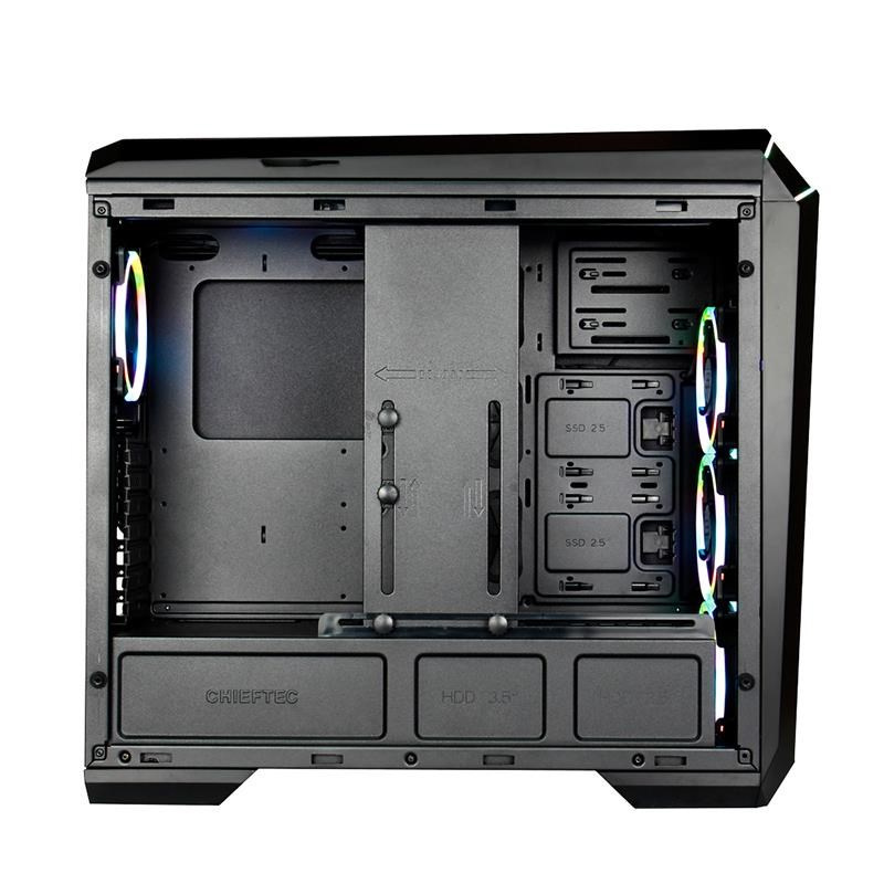CHIEFTEC Miditower STALLION II, GP-02-OP Black, 4x RGB Rainbow Fan, 2 x USB 3.0/1x USB 2.0, bočné sklo