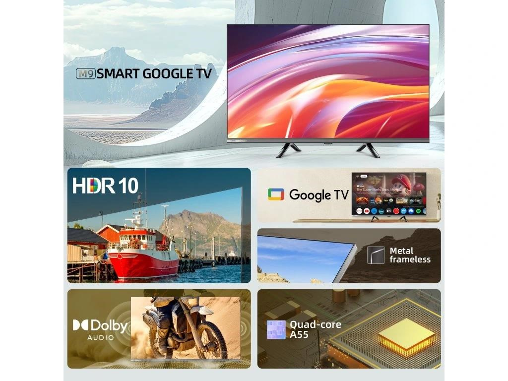 CHiQ 32“ L32M9E, kovová bezrámečková Smart Google TV s HDR10, HLG, HD obrazovkou s rozlíšením, Dolby Audio a vylepšeným zvukom dbx-tv.