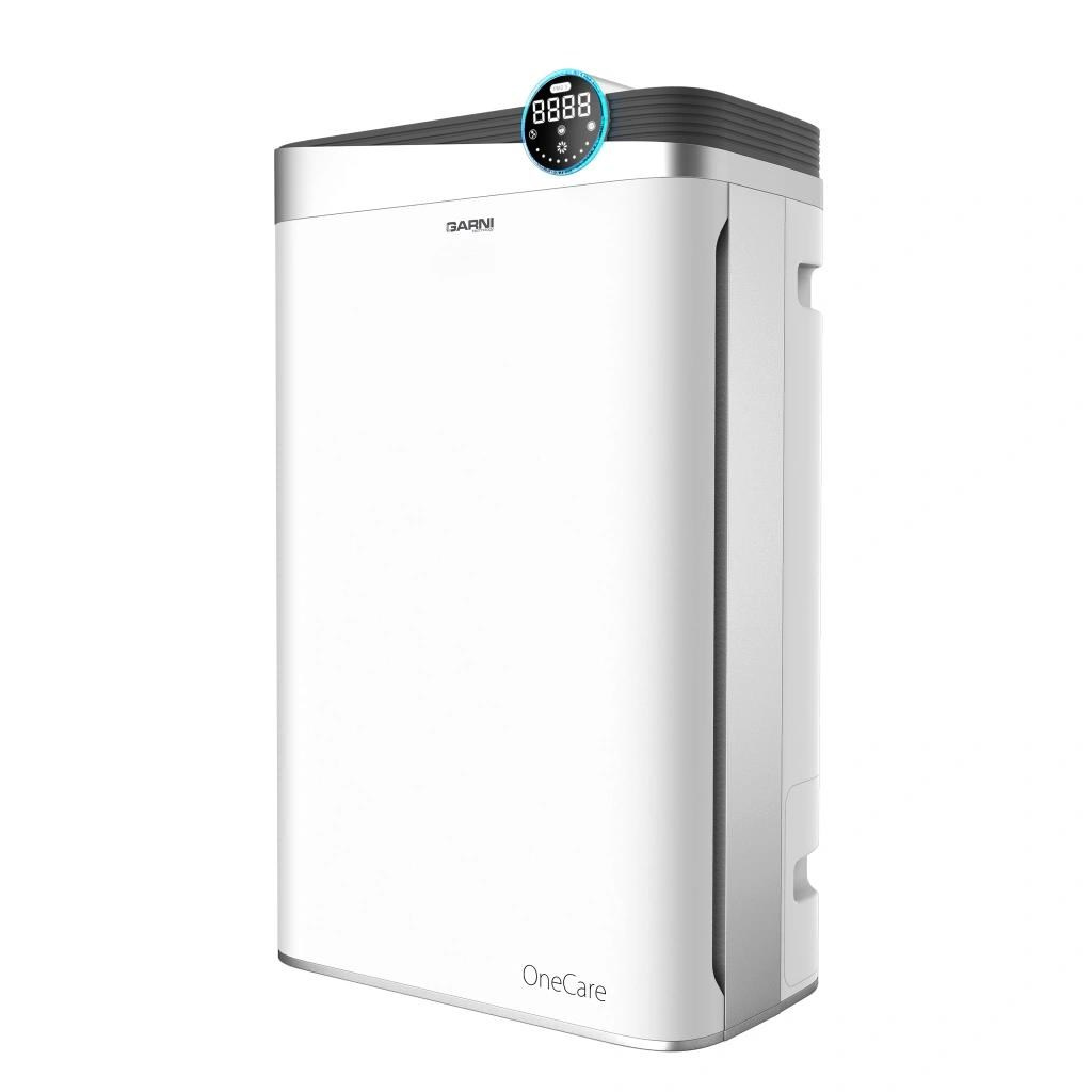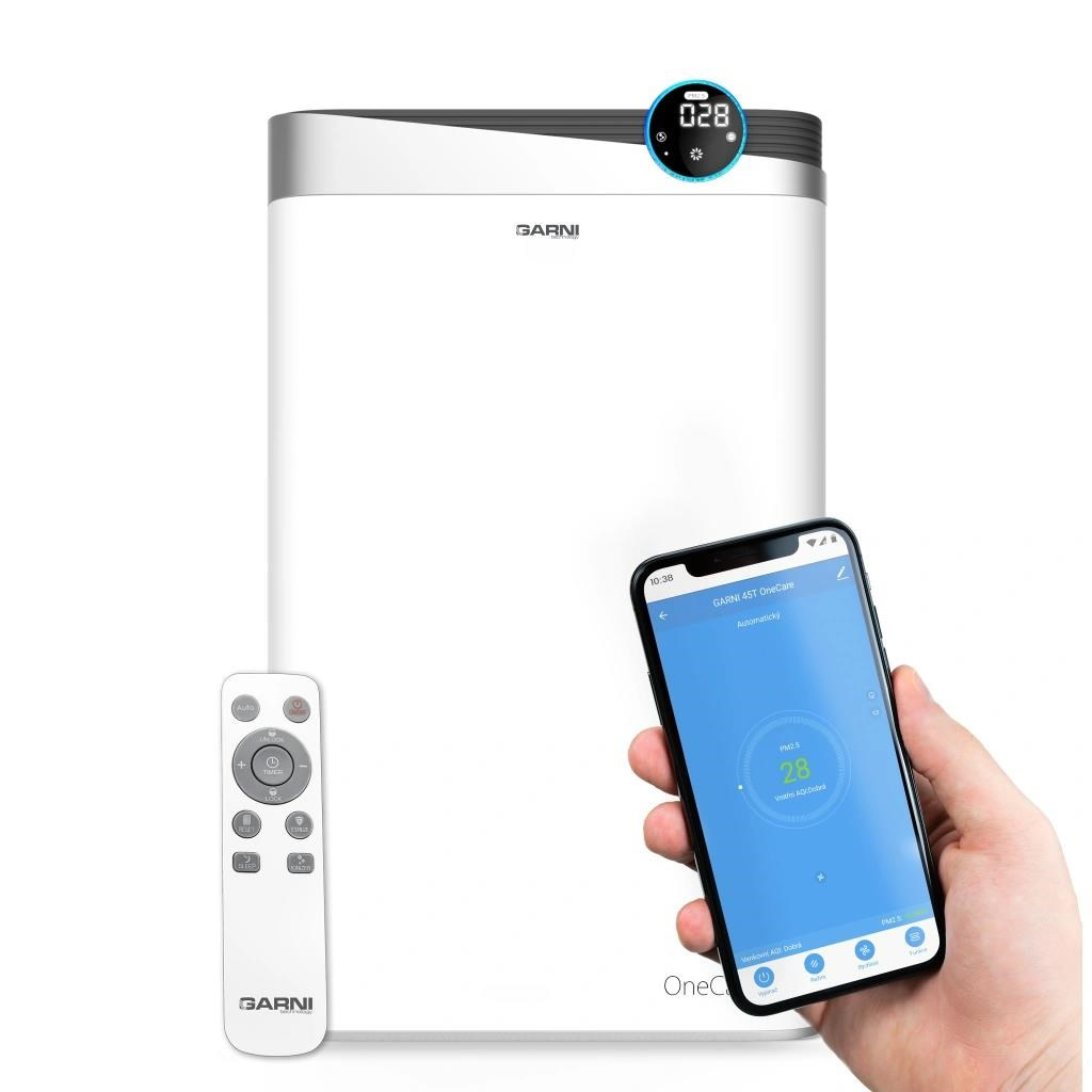 Chytrá čistička vzduchu, model GARNI 45T OneCare, zabezpečí vo vašej domácnosti alebo kancelárii pomocou osempásmového filtračného systému a zabudovaného senzora na meranie pevných častíc PM2.5 čistý a zdravý vzduch. Vďaka ľahko čitateľnému invertnému LCD displeju s vysokým kontrastom, funkcii zvlhčovania vzduchu, tichému chodu, automatickému a nočnému režimu, možnosti sledovať namerané hodnoty online a možnosti spúšťania pomocou ďalších zariadení je model GARNI 45T OneCare zaujímavým prvkom chytrej domácnosti.