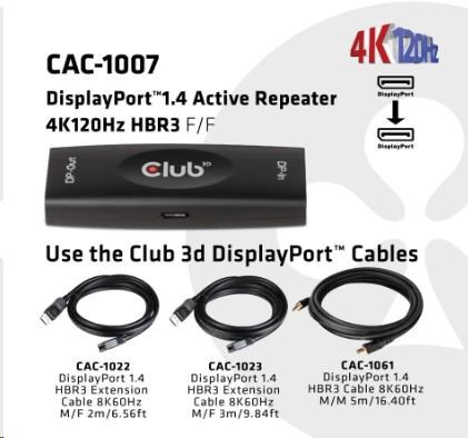 Club3D Adaptér aktivní DisplayPort 1.4 Repeater 4K120HZ HBR3 (F/F), černá