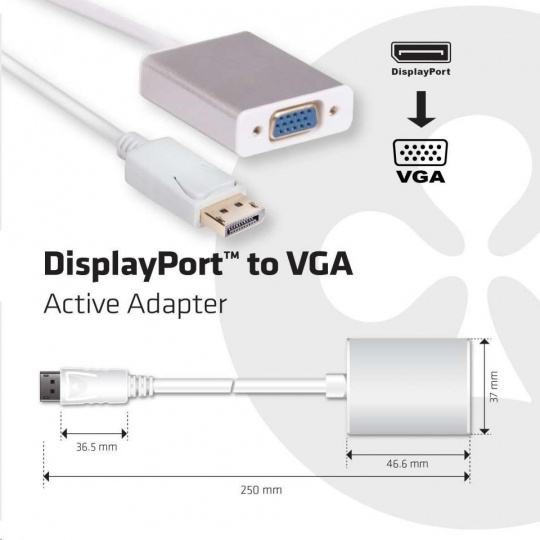 Club-3D DISPLAY PORT 1.1A MALE TO VGA FEMALE ACTIVE ADAPTER