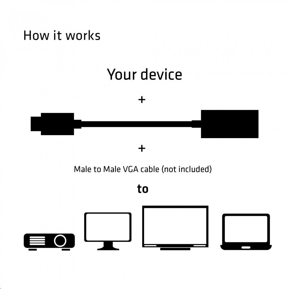 Club 3D CAC-1502 je aktívny prevodník signálu VGA. Tento adaptér USB-C na VGA je najjednoduchšie riešenie pre pripojenie zdrojového zariadenia s rozhraním USB 3.1 typu C s alternatívnym režimom DisplayPort ™ k monitoru alebo projektoru s rozhraním VGA. Adaptér je adaptér je kompaktný a vysoko prenosný. Napájaný cez USB-C port, adaptér nevyžaduje žiadne externé napájanie a je tiež ideálny pre použitie s notebookmi a ultrabookmi.
