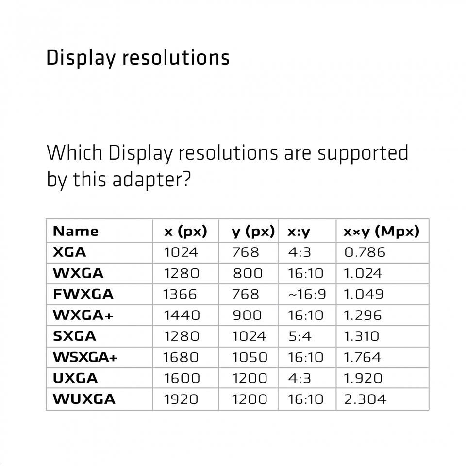 - Podporuje rozlíšenie monitoru až WUXGA 1920 x 1200p @ 60Hz