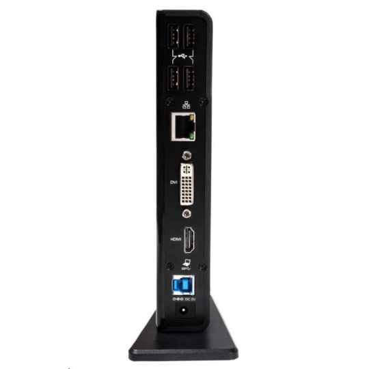 Vďaka čipu DisplayLink ™ DL-3900 je možné k dokovacej stanici pripojiť dva externé monitory s vysokým rozlíšením prostredníctvom výstupov HDMI ™ a DVI-I. Má ethernetový port RJ 45 pre spoľahlivé a rýchle drôtové pripojenie k sieti a ponúka celkom 6 portov USB pre periférie  a pamäťové zariadenia, rovnako aj výstup zvuku a mikrofónu. To všetko je pripojené k vášmu zariadeniu pomocou jediného kábla USB.