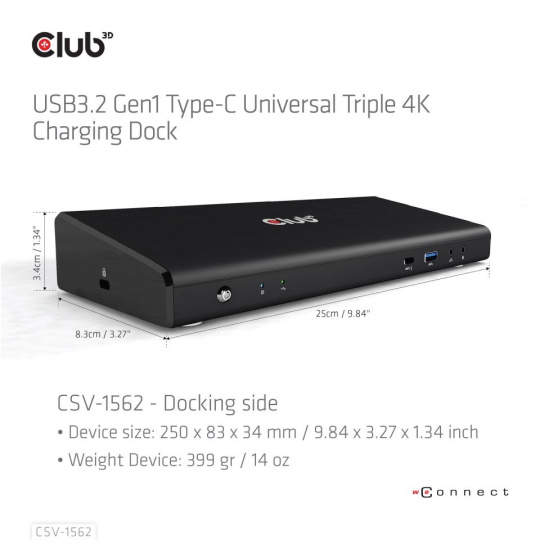 Obsah balenia Club 3D CSV-1562 USB C 3.2 Univerzálny trojitý nabíjací dok 4K Gen1