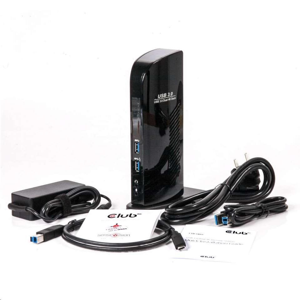 Club3D USB-A a USB-C Dual Display 4K60Hz Dokovacia stanica (6x USB 3.0/2x DP/Ethernet/USB-B/2x audio)