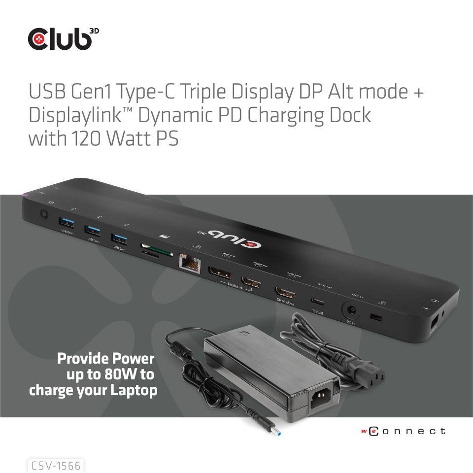 Club3D USB-C, Triple Display DP Alt mode Displaylink Dynamic PD Charging Dock so 120 W PS