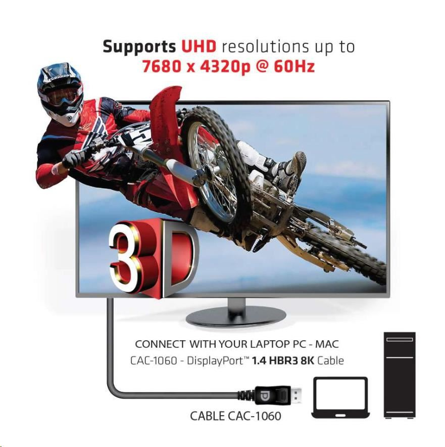 Club 3D DisplayPort™ 1.4 HBR3 8K kábel.