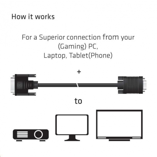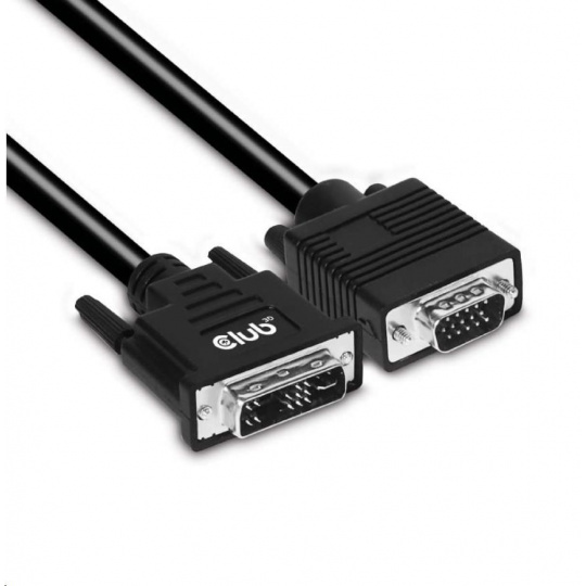 Club 3D CAC-1243 je kábel DVI-A samec na VGA samec. Tento kábel je jednosmerný. Tento kábel CAC-1243 je najjednoduchším riešením na pripojenie monitora VGA, projektora alebo televízora k výstupu DVI-A počítača/notebooku/hernej konzoly.