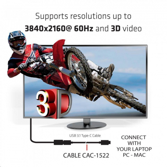 Club-3D USB 3.1 TYPE C MALE TO TYPE C MALE USB 3.1 (10Gbps) Type C PowerDelivery 0.8M/2.6Ft Cable Support 3840x2160(60Hz)