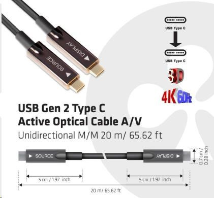 Kábel USB Club3D 3.2 Typ C Gen2, aktívny, (M/M), 20 m, optický, aktívny, jednosmerný