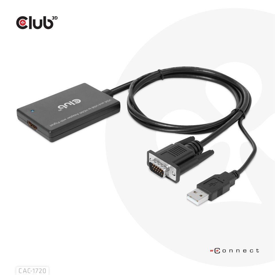 Club3D kabel VGA a USB-A na HDMI s ocáskem, M/F, 0.6m