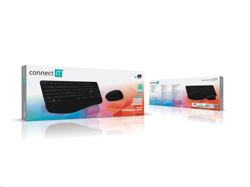 CONNECT IT Combo bezdrôtová čierna klávesnica + myš, (+1x AAA +1x AA batérie zdarma), CZ + SK rozloženie