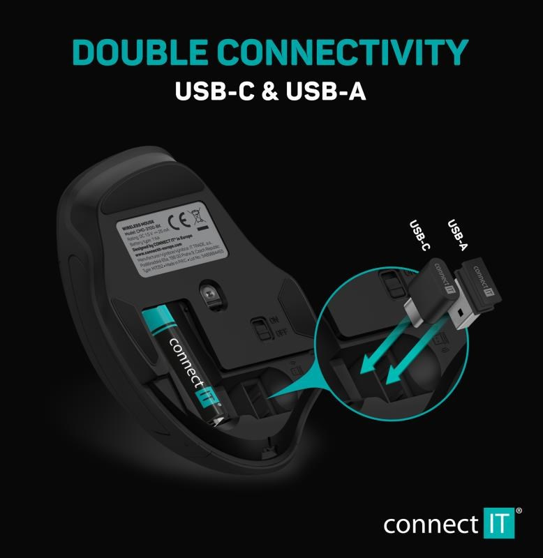 CONNECT IT Dual SmartSwitch bezdrátová myš, USB-A + C (+1x AA baterie zdarma), šedá